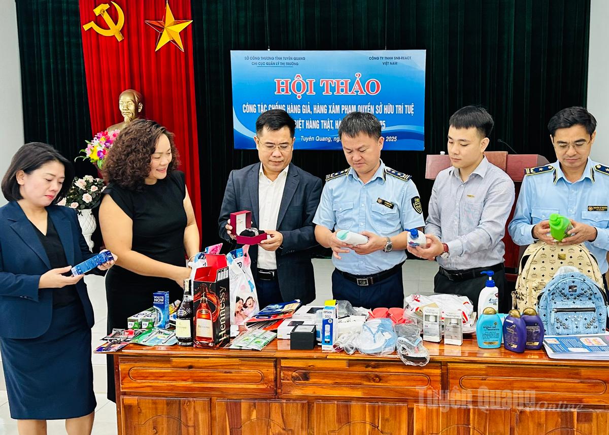 Sáng 3-11, Chi cục Quản lý thị trường tỉnh đã phối hợp với Công ty TNHH SNB-REACT Việt Nam tổ chức Hội thảo chuyên đề về công tác chống hàng giả, xâm phạm quyền sở hữu trí tuệ và phân biệt hàng thật, hàng giả năm 2025.