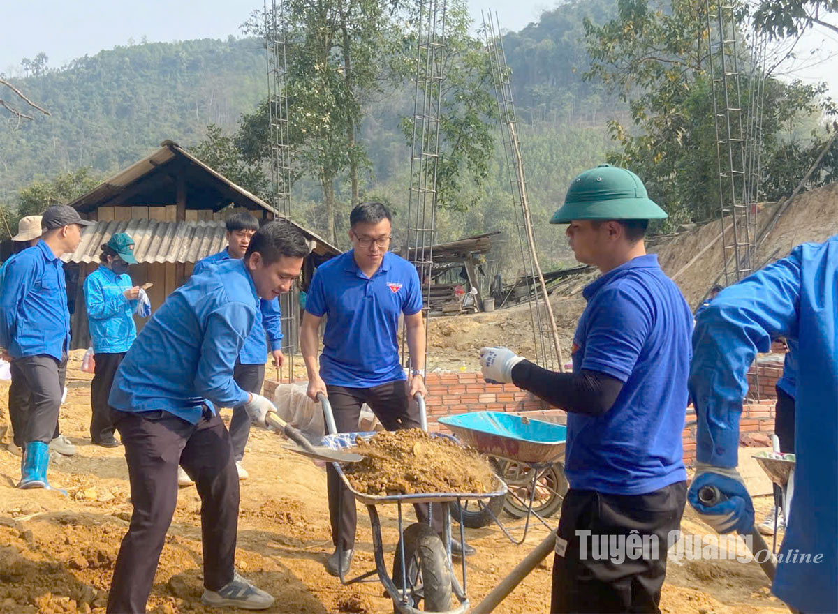 Đoàn thanh niên xã Đạo Viện giúp ngày công xây dựng nhà ở cho hộ nghèo.