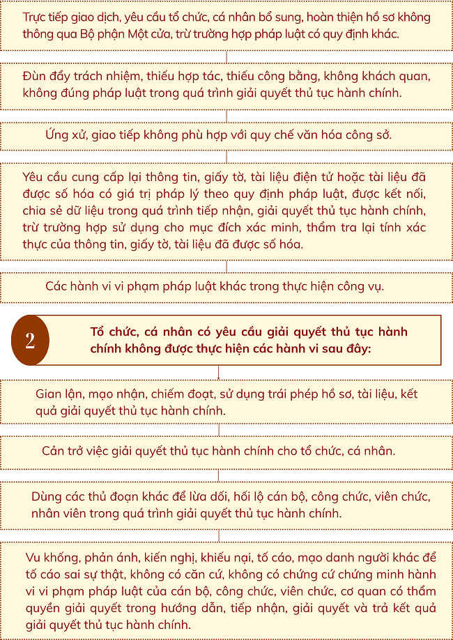 Những hành vi không được làm trong giải quyết thủ tục hành chính theo cơ chế một cửa, một cửa liên thông