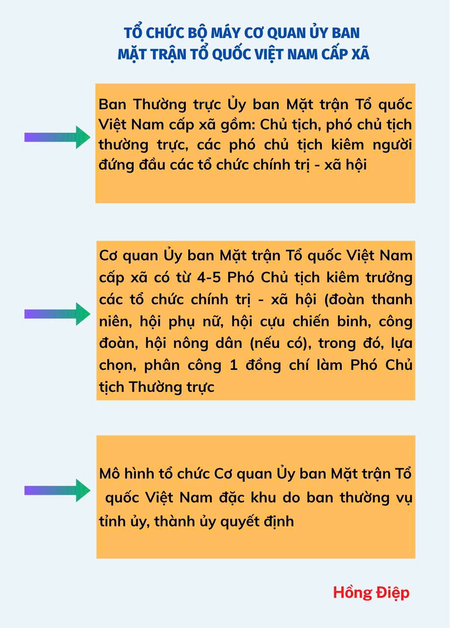 Ngày 09/6/2025, Thường trực Ban Bí thư Trần Cẩm Tú đã ký ban hành Quy định 301-QĐ/TW của Ban Bí thư Trung ương Đảng về chức năng, nhiệm vụ, tổ chức bộ máy cơ quan Ủy ban Mặt trận Tổ quốc Việt Nam cấp tỉnh, cấp xã. Quy định có hiệu lực từ ngày 01/7/2025.