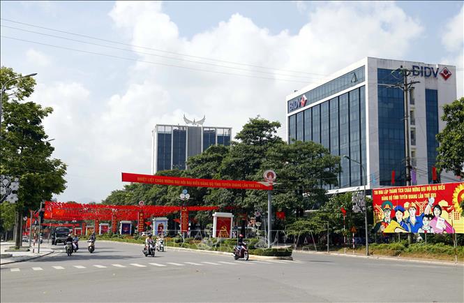 Đường phố Tuyên Quang rực đỏ, cờ hoa, băng rôn khẩu hiệu chào mừng Đại hội Đảng bộ tỉnh Tuyên Quang nhiệm kỳ 2020 - 2025. Ảnh: Quang Đán/TTXVN