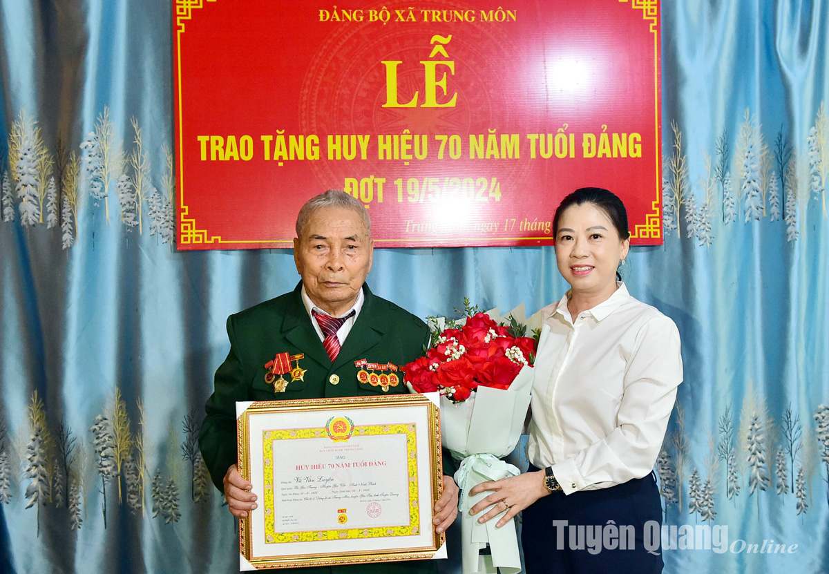 Sáng nay 17-5, đồng chí Lê Thị Kim Dung, Phó Bí thư Thường trực Tỉnh ủy, Chủ tịch HĐND tỉnh trao Huy hiệu Đảng đợt 19/5/2024 tại Đảng bộ các xã Trung Môn, Hoàng Khai, huyện Yên Sơn.
