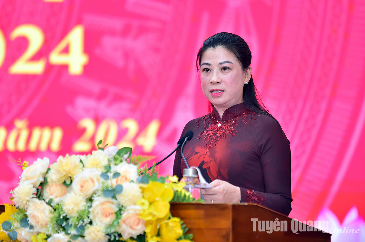 Đồng chí Lê Thị Kim Dung, Phó Bí thư Thường trực Tỉnh ủy, Chủ tịch HĐND tỉnh chúc mừng các cơ quan báo chí Trung ương tại Tuyên Quang