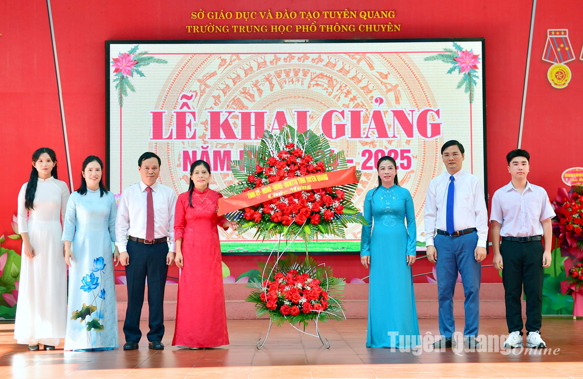 Đồng chí Lê Thị Kim Dung, Phó Bí thư Thường trực Tỉnh ủy, Chủ tịch HĐND tỉnh dự Lễ khai giảng năm học mới trường THPT Chuyên Tuyên Quang