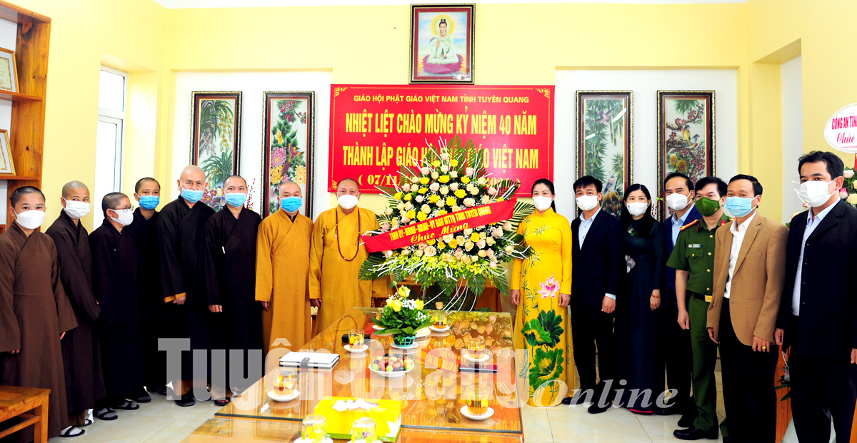 Sáng 2-11, đồng chí Lê Thị Kim Dung, Phó Bí thư Thường trực Tỉnh ủy, Chủ tịch HĐND tỉnh đã tới thăm, chúc mừng Ban Trị sự Giáo hội Phật giáo Việt Nam tỉnh Tuyên Quang nhân chuẩn bị kỷ niệm 40 năm thành lập Giáo hội Phật giáo Việt Nam (7/11/1981 - 7/11/2021).