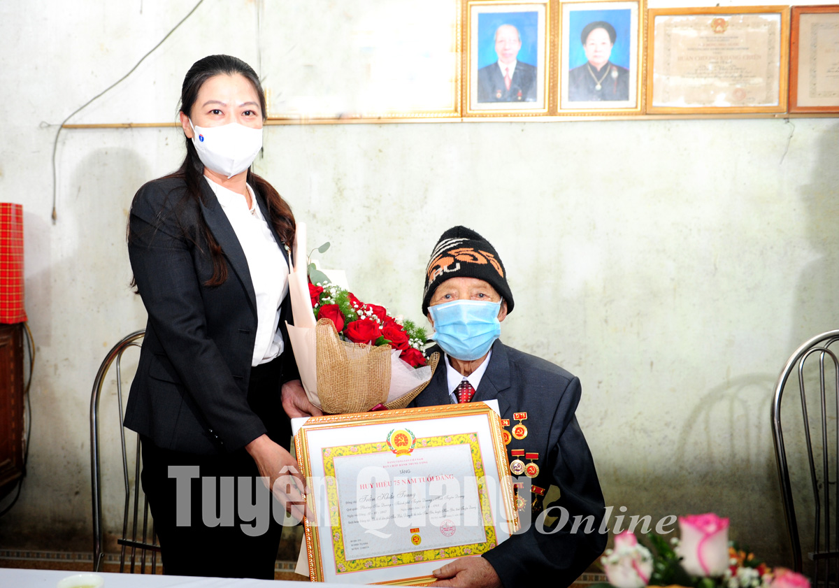 Chiều 2-11, đồng chí Lê Thị Kim Dung, Phó Bí thư Thường trực Tỉnh ủy, Chủ tịch HĐND tỉnh đã tới thăm và trao Huy hiệu 75 năm tuổi Đảng cho đảng viên Trần Khắc Trung, sinh năm 1927, tổ dân phố Tân Bắc, thị trấn Tân Yên, huyện Hàm Yên.