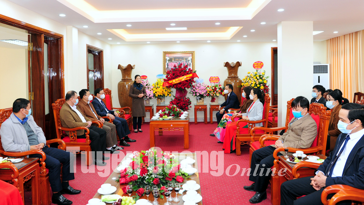 Nhân dịp chuẩn bị đón Tết Nguyên đán Nhâm Dần, chiều nay, 25-1, đồng chí Lê Thị Kim Dung, Phó Bí thư Thường trực Tỉnh ủy, Chủ tịch HĐND tỉnh đã tới thăm, chúc tết cán bộ, chiến sỹ Phòng An ninh Chính trị nội bộ - Công an tỉnh. Cùng đi có đồng chí Ma Thế Hồng, Ủy viên Ban Thường vụ Tỉnh ủy, Trưởng Ban Tổ chức Tỉnh ủy, Bí thư Đảng ủy Khối các cơ quan và doanh nghiệp tỉnh; lãnh đạo Ban Nội chính Tỉnh ủy.