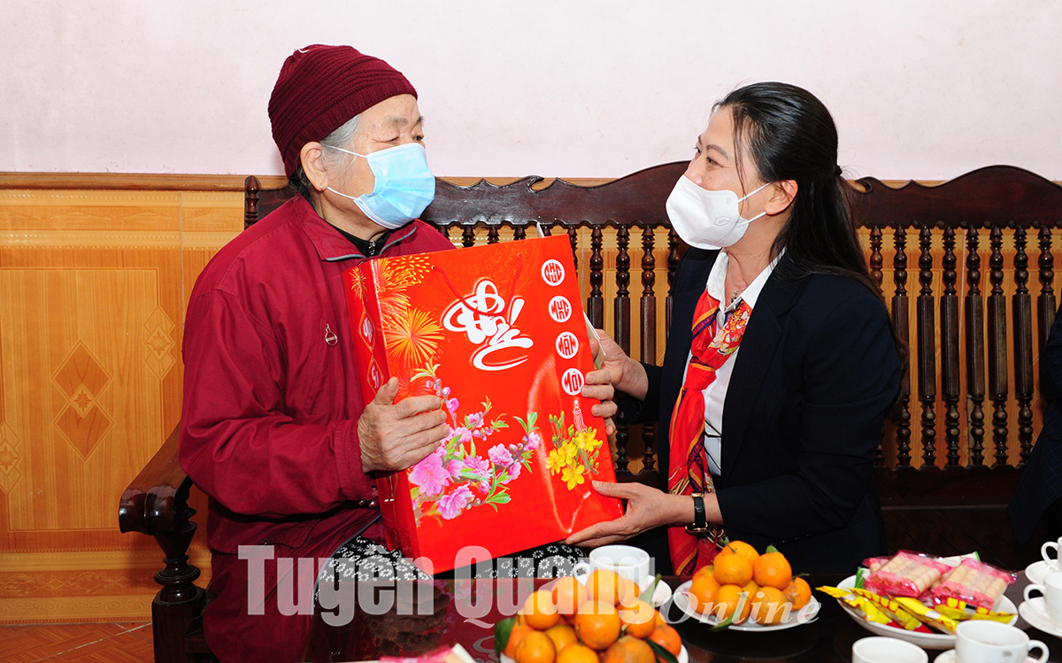 Nhân dịp chuẩn bị đón Tết Nguyên đán Nhâm Dần 2022, chiều 18-1, đồng chí Lê Thị Kim Dung, Phó Bí thư Thường trực Tỉnh ủy, Chủ tịch HĐND tỉnh đã tới trao quà cho gia đình chính sách và người cao tuổi sách tại thành phố Tuyên Quang.