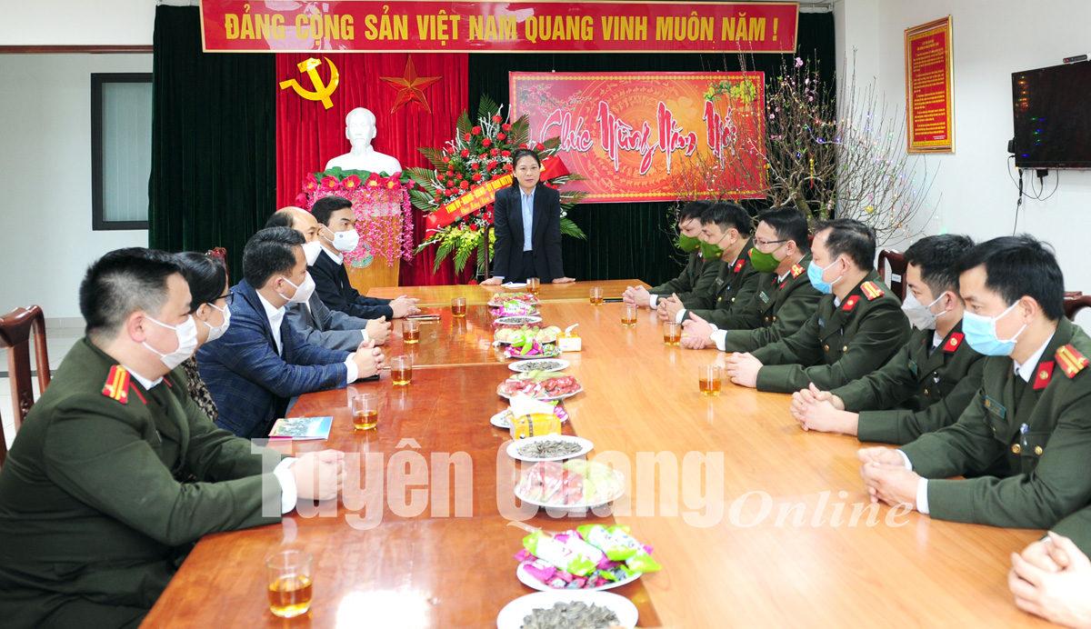 Đồng chí Lê Thị Kim Dung, Phó Bí thư Thường trực Tỉnh ủy, Chủ tịch HĐND tỉnh chúc tết Phòng An ninh Chính trị nội bộ - Công an tỉnh