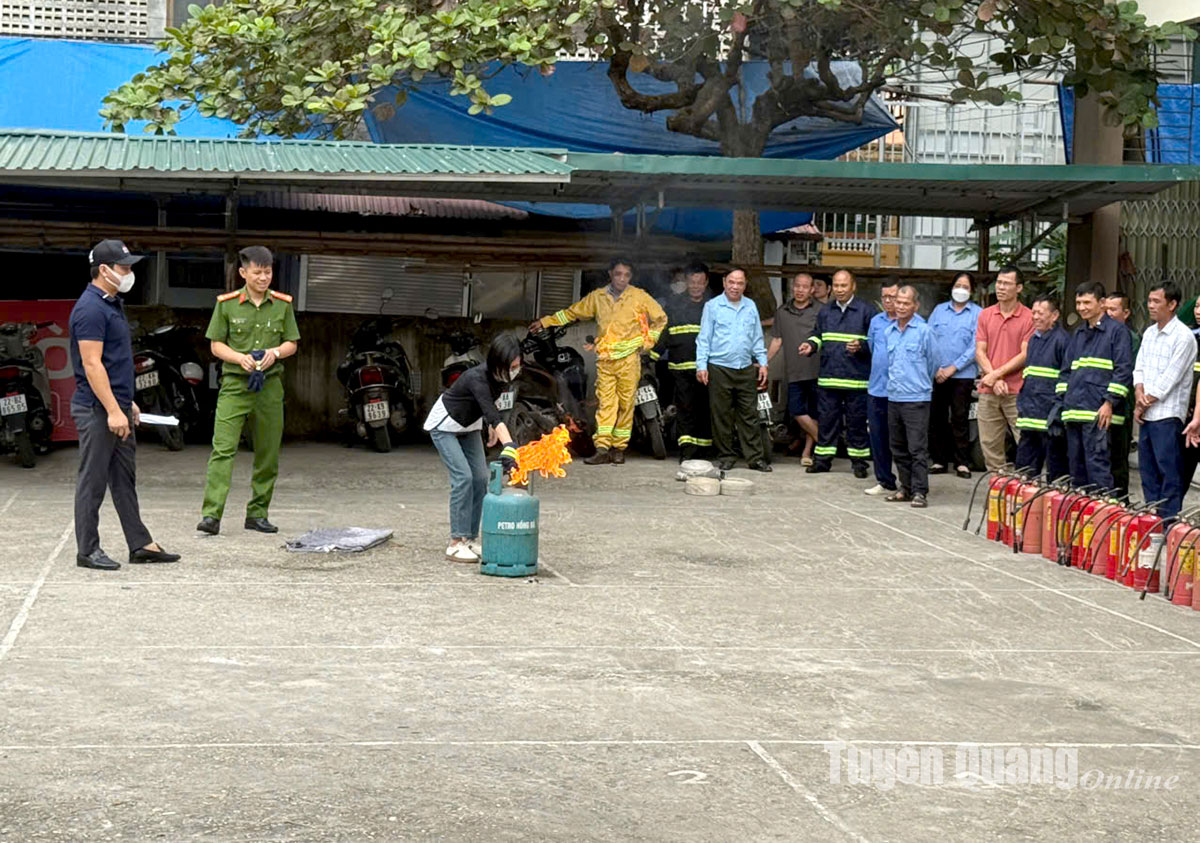 Phòng Cảnh sát PCCC và Cứu nạn, cứu hộ, Công an tỉnh phối hợp với Ban Quản lý chợ TP Tuyên Quang tổ chức công tác tập huấn nghiệp vụ PCCC và cứu nạn, cứu hộ tại chợ Tam Cờ.