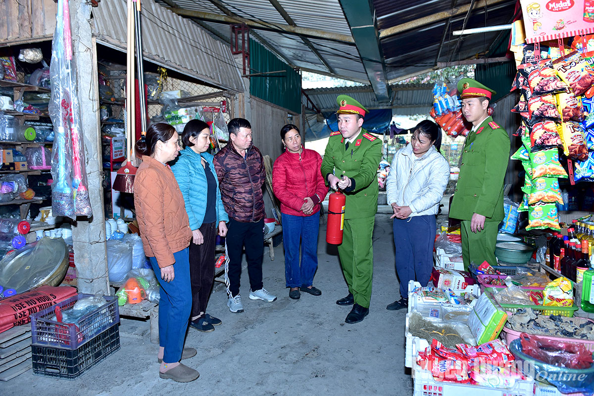 Công an phường Tân Hà (TP Tuyên Quang) tuyên truyền, hướng dẫn các tiểu thương tại chợ Trường Tiến về công tác phòng cháy, chữa cháy.