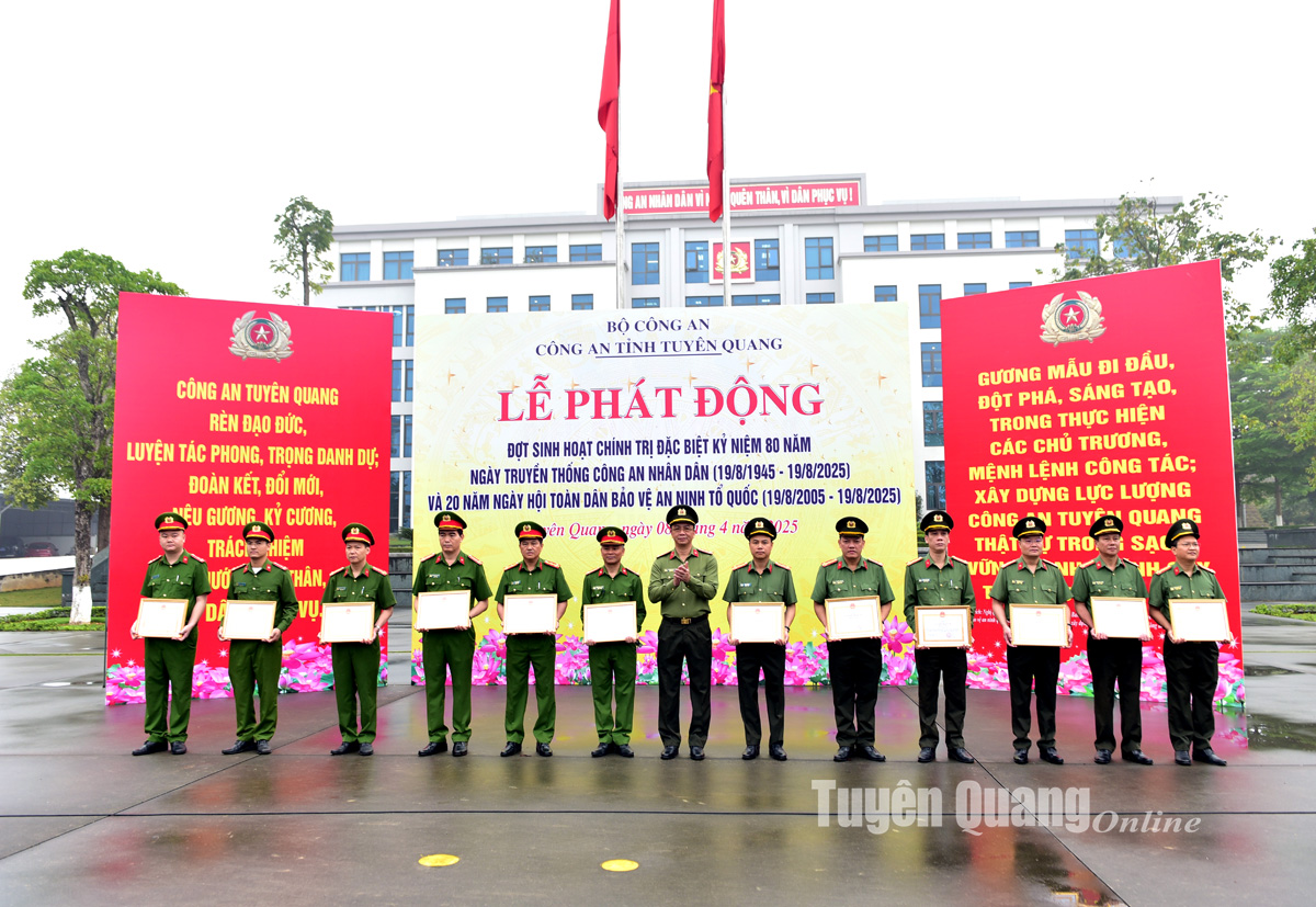 Sáng 8 - 4, Công an tỉnh Tuyên Quang tổ chức lễ phát động đợt sinh hoạt chính trị đặc biệt kỷ niệm 80 năm Ngày truyền thống Công an nhân dân (19 - 8 - 1945 – 19 – 8 - 2025) và 20 năm Ngày hội toàn dân bảo vệ an ninh Tổ quốc (19 – 8 - 2005 – 19 – 8 - 2025). Đại tá Phạm Kim Đĩnh, Uỷ viên Ban Thường vụ Tỉnh uỷ, Giám đốc Công an tỉnh chủ trì buổi lễ.