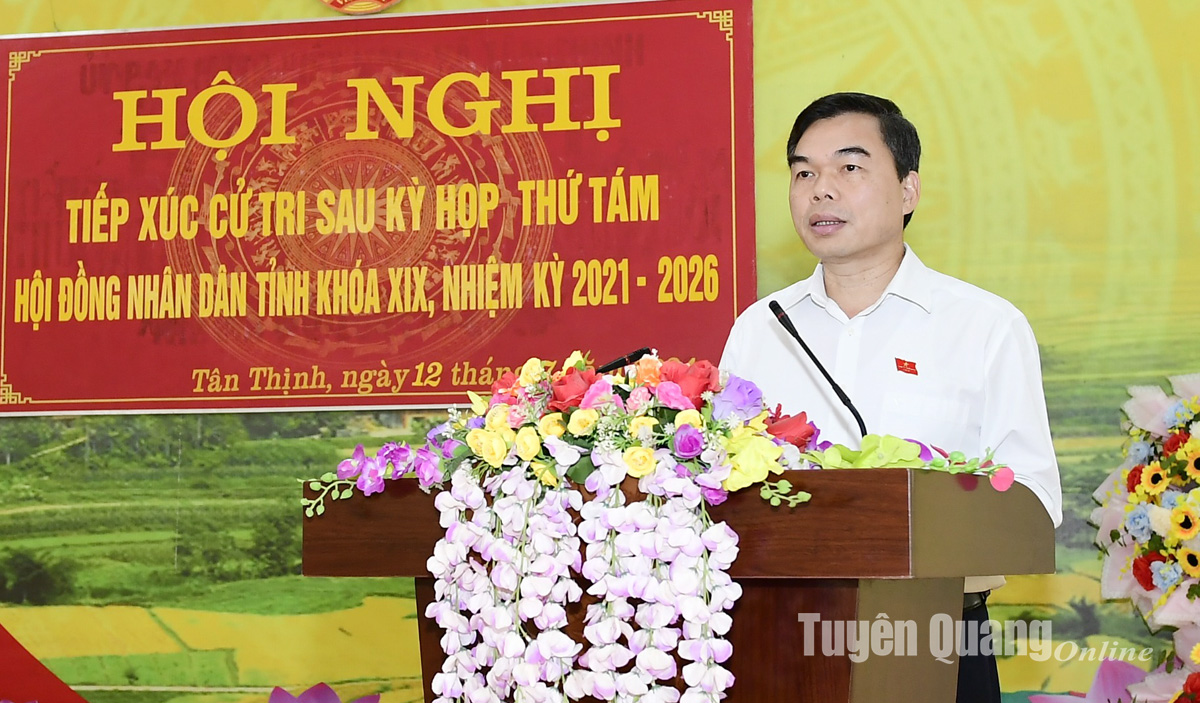 Phát biểu với cử tri xã Tân Thịnh, đồng chí Trưởng Ban Tổ chức Tỉnh ủy Ma Thế Hồng nhấn mạnh, các ý kiến, kiến nghị của cử tri đều thiết thực, chính đáng. Đồng chí đề nghị đại biểu HĐND các cấp tập hợp các ý kiến, kiến nghị của cử tri phản ánh để trình cơ quan chức năng các cấp thuộc thẩm quyền xem xét giải quyết. Đồng chí mong muốn, chính quyền và nhân dân xã Tân Thịnh tập trung phát triển kinh tế, giữ vững, nâng các tiêu chí trong xây dựng nông thôn mới, xây dựng quê hương ngày càng giàu đẹp.