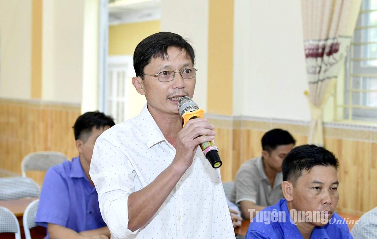 Cử tri xã Tân Thịnh (Chiêm Hóa) phát biểu ý kiến tại hội nghị.
