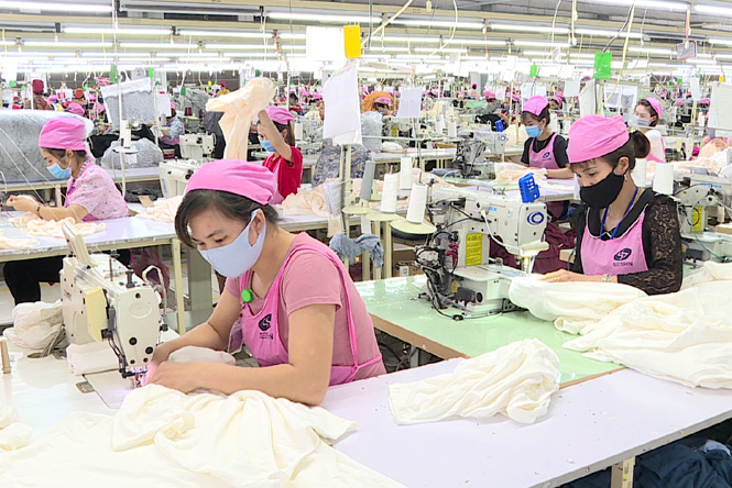 Dây chuyền sản xuất hàng xuất khẩu của Nhà máy May Seshin VN2.  Ảnh: Thu Hương