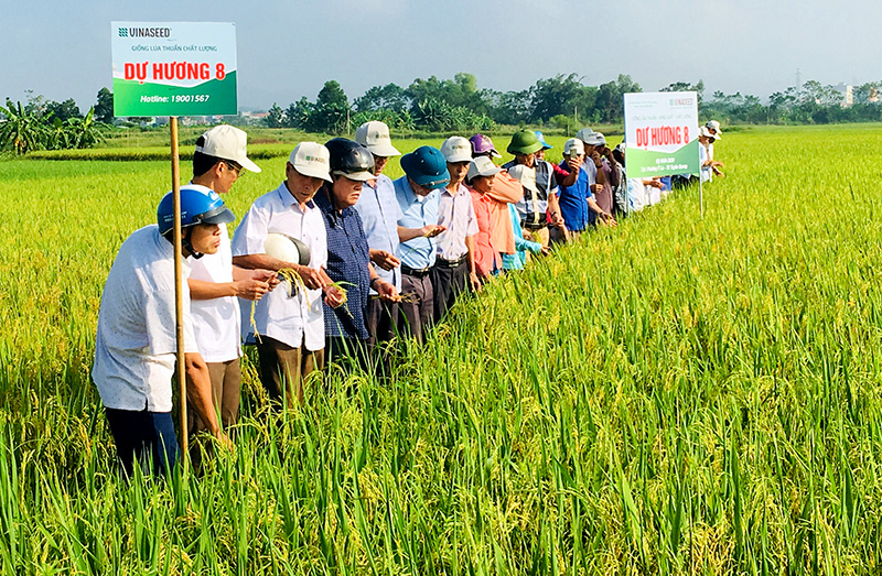 Mô hình lúa Dự Hương 8 được trồng thử nghiệm 2ha, với 22 hộ tham gia. Giống lúa này có thời gian sinh trưởng vụ xuân 120-125 ngày, vụ mùa 95-100 ngày, năng suất đạt 65 tạ/ha; gạo trắng, cơm mềm, có hương thơm nhẹ. Giống lúa VNR20 được trồng 50 ha với 320 hộ tham gia. Giống lúa VNR20 thích nghi tốt với điều kiện thời tiết, khí hậu của địa phương, thời gian sinh trưởng vụ xuân 125-130 ngày, vụ mùa 105- 110 ngày, năng suất trung bình 70-75 tạ/ha, thâm canh đạt 85-90 tạ/ha; cơm ngon, mềm, đậm, được thị trường ưa chuộng.