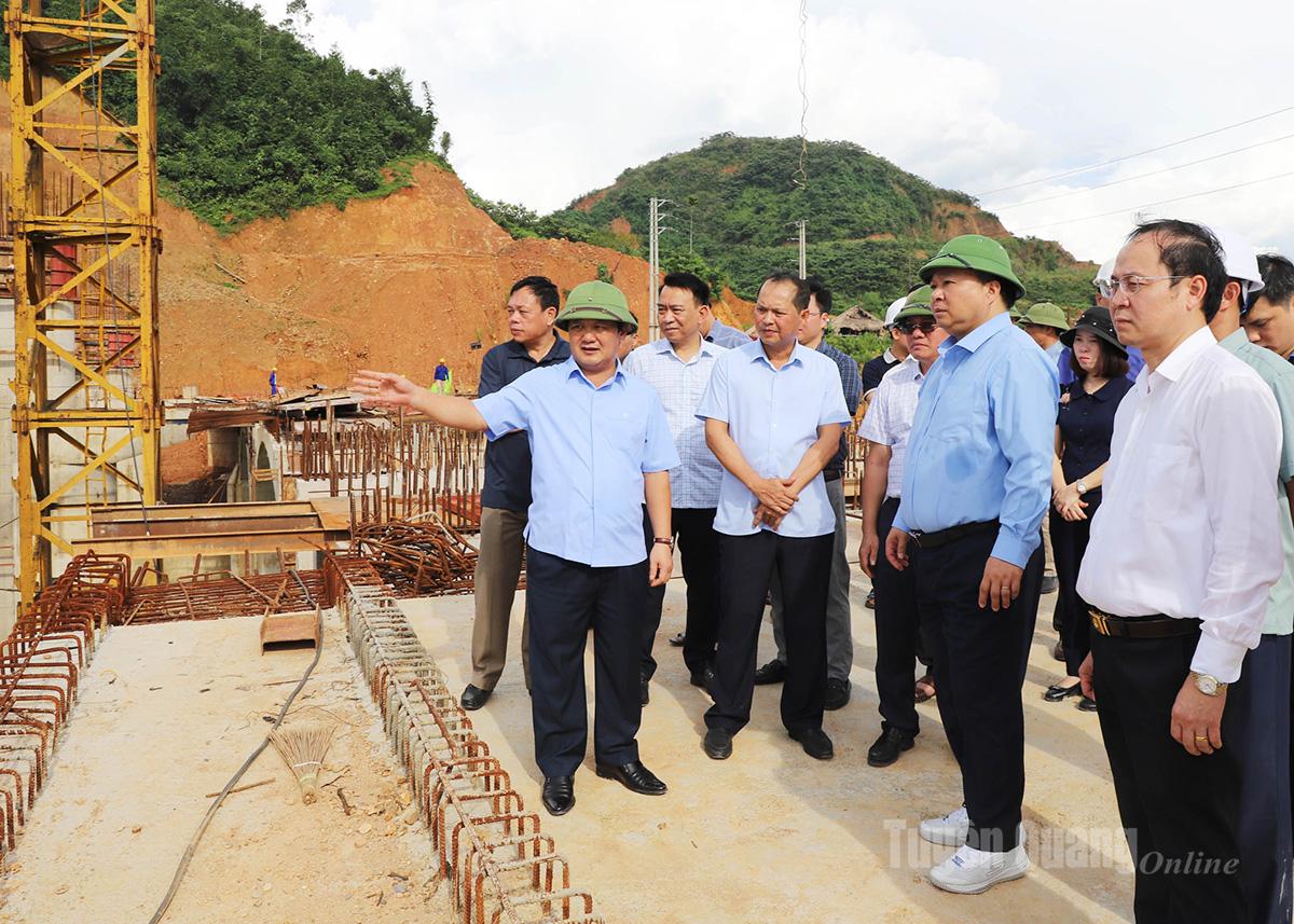 Bí thư Tỉnh ủy Hầu A Lềnh khảo sát các hạng mục phụ trợ, mực nước dâng sau khi Đập dâng nước hoàn thành.