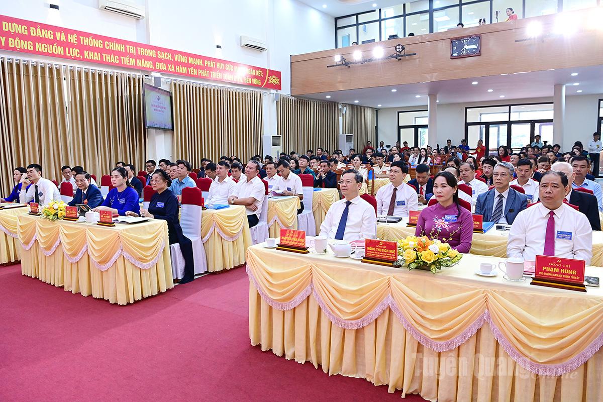 Dự Đại hội có các đồng chí: Hà Thị Khiết, nguyên Bí thư Trung ương Đảng, nguyên Trưởng ban Dân vận Trung ương, nguyên Bí thư Tỉnh ủy Tuyên Quang, Phó Chủ tịch không chuyên trách Ủy ban Trung ương MTTQ Việt Nam; Nguyễn Văn Sơn, Phó Bí thư Tỉnh ủy, Chủ tịch HĐND tỉnh; Nông Thị Bích Huệ, Ủy viên Ban Thường vụ Tỉnh ủy, Phó Bí thư Thường trực chuyên trách Đảng ủy UBND tỉnh; Ma Thị Thúy, Ủy viên BCH Đảng bộ tỉnh, Phó Trưởng đoàn chuyên trách Đoàn ĐBQH tỉnh; đại biểu lãnh đạo một số ban, sở, ngành tỉnh; lãnh đạo huyện Hàm Yên các thời kỳ. Dự đại hội có 126 đại biểu đại diện cho trên 2.000 đảng viên toàn Đảng bộ.