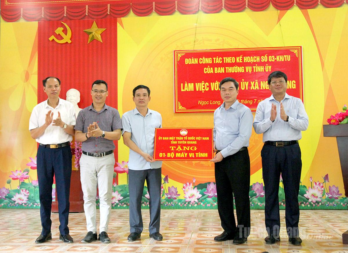 Tại buổi làm việc, đoàn công tác tặng 1 bộ máy tính cho xã và tặng 3 suất quà cho gia đình cựu chiến binh trên địa bàn.