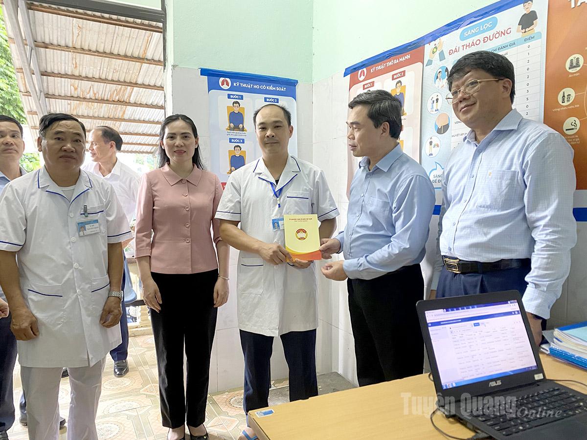 Đoàn công tác tham quan cơ cơ sở vật chất và tặng quà Trạm Y tế xã Ngọc Long.