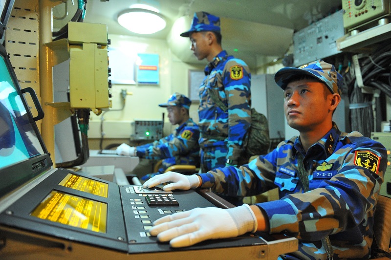 Cán bộ, chiến sĩ Lữ đoàn 167, Vùng 2 Hải quân trong buổi huấn luyện đêm_Ảnh: TTXVN