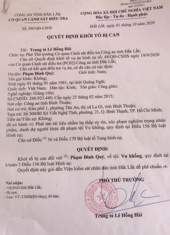 Công an tỉnh Đắk Lắk khới tố đối tượng vu khống